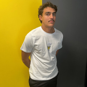 Marquage patch brodé ELDERA blanc sur le devant, logo SMR sérigraphié.