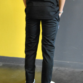 Finitions bas des chevilles avec empiècements doublés et fermeture zippée.