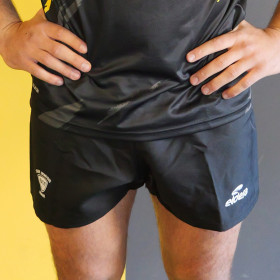 Short de rugby court, noir. Idéal pour un entraînement léger ou intensif.