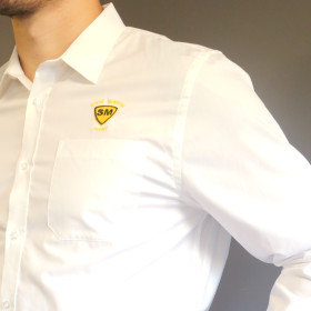 Poche poitrine côté gauche, poignet réglables avec boutons et col
